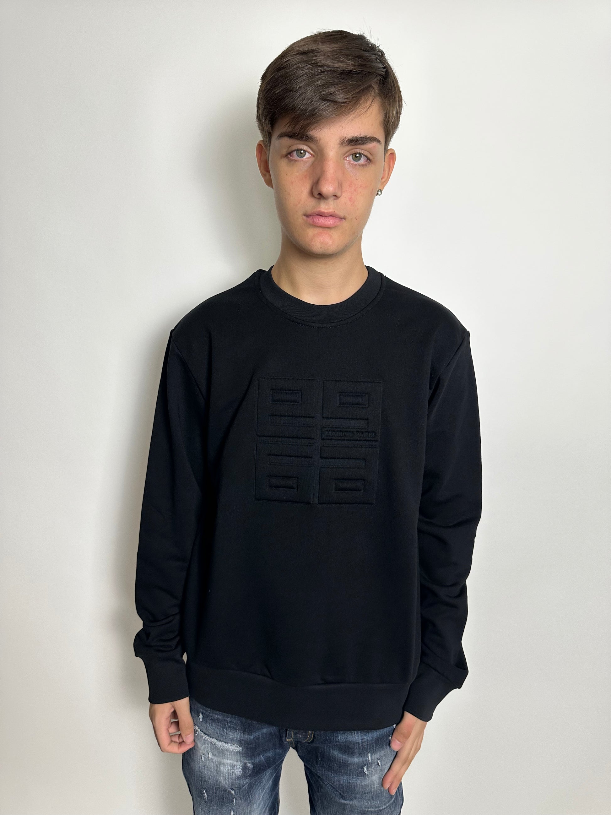 2570 "La felpa M9P è un must-have per ogni appassionato di moda. Realizzata con materiali di alta qualità, presenta il logo color su colore della Maison 9 Paris in rilievo. Aggiungi un tocco di stile al tuo guardaroba con questa felpa di colore nero, perfetta per ogni occasione."